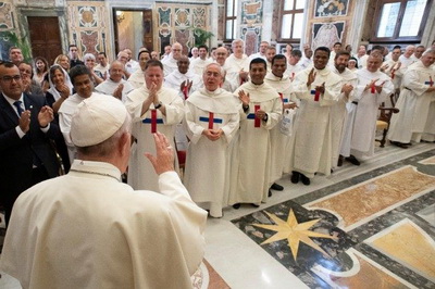 Ir ievēlēts arī jauns ģenerālpriekšnieks, tēvs Luidži Bukkarello. Ordenis ir viens no senākajiem Baznīcā. To nodibināja franču priesteris Žans de Mata (1154-1213), bet apstiprināja pāvests Inocents III 1198. gada decembrī. “Lai neviens jums neatņem spēju sapņot un pravietot! Pārvarēsim mūsu bailes! Piecelsimies kājās! Jaunieši tuvu un tālu mūs gaida,” ar šādiem vārdiem pāvests vērsās pie trinitāriešu ordeņa locekļiem. Svētais tēvs pateicās par viņu darbu dažādās žēlsirdības jomās, skolās, draudzēs, cietumos un rehabilitācijas iestādēs. Francisks norādīja uz dažiem pastorālajiem izaicinājumiem darbā ar jauniešiem un atzīmēja, ka “lielā tukšuma kultūra, ko radījusi vājā doma un relatīvisms, fragmentārā kultūra, kurā lielie, nozīmīgie temati ir zaudējuši jēgu, kā arī imanentais, kurā aizvērušies sevī dzīvo daudzi jaunieši, varētu likt domāt, ka nav vietas ticības paaicinājuma piedāvājumam jaunajām paaudzēm.” “Tomēr, izdarīt šādu secinājumu būtu liela kļūda,” apgalvoja pāvests. Viņš atgādināja, ka jaunieši šodien dedzīgi meklē jēgas pilnību savai dzīvei. Viņi ir spējīgi bez nosacījumiem nodoties lielām lietām, taču tiem ir vajadzīga arī pavadība, nenoniecinot viņu robežas. Šai ziņā reliģiskie var palīdzēt jauniešiem harmonizēt un sakārtot savas ilgas. Tomēr, nedrīkst aizmirst, ka jauniešiem tai visā ir jāatvēl galvenā loma. Francisks piebilda, ka jaunieši necieš vidi, kurā tie nerod sev vietu un nesaņem stimulus. Trinitāriešu ordeņa tēvus pāvests aicināja sekot Jēzus attieksmei pret Emmausas mācekļiem. Arī šodien jaunieši meklē “ceļabiedrus” un “dzīvā ūdens akas, no kurām pasmelties, lai veldzētu slāpes pēc pilnības”. “Esiet jauniešiem vecākie brāļi,” teica pāvests, “ar kuriem var aprunāties un kuriem var uzticēties. Uzklausiet viņus, veiciet ar viņiem dialogu, kopā izšķirojiet, kas ir labs un kas ļauns. Lai viņi izjūt, ka jūs tos patiesi mīlat un varat tiem piedāvāt visaugstāko mīlestības mēru – svētumu, kristīgās dzīves gājumu pret straumi, tādu pašu kā Kalna svētībās.” Pāvests uzsvēra, ka nevienu nedrīkst izslēgt no pretimnākoša skatiena, jo īpaši tos, kuri “ir attālinājušies”. Svētais tēvs iedrošināja iet kopā ar jauniešiem, atmetot iepriekš sagatavotas shēmas, neaizmirstot, ka ir jābūt pacietīgiem un jāgaida, kad Kungs ļaus iesētajai sēklai izdīgt un nest augļus. Vaticannews.va |