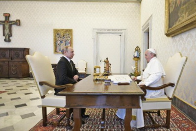 Apmēram stundu ilgajai pāvesta un prezidenta Putina sarunai bija privāts raksturs. Tā notika Apustuliskās pils Bibliotēkas zālē. Noslēgumā pāvests un viesis apmainījās ar dāvanām. Vatikāna izplatītajā notā teikts, ka sirsnīgu sarunu gaitā abas puses izteica gandarījumu par divpusējo attiecību attīstību. Tika skarti vairāki jautājumi par Katoliskās Baznīcas dzīvi Krievijā, runāts par ekoloģiju, par dažiem starptautiski aktuāliem tematiem, īpaši pakavējoties pie Sīrijas, Ukrainas un Venecuēlas. Prezidents Putins vizītē Vatikānā bija ieradies trešo reizi. Ar pāvestu Francisku viņš šeit tikās jau 2013. un 2015. gadā. Jāpiebilst, ka Vatikāna Valsts sekretariāta Vispārējo lietu nodaļas pārstāvis Paolo Bordža Pediatriskās slimnīcas “Bambino Gesù” vārdā, šodien, 4. jūlijā, parakstīja memorandu ar Krievijas Federācijas Veselības aizsardzības ministriju par abpusējas sadarbības stiprināšanu medicīnas un medicīnisko pētījumu jomā. Memoranda parakstīšana notika slimnīcas “Bambino Gesù” Svētā Pāvila vārdā nosauktajā kompleksā. No Krievijas puses memorandu parakstīja Veselības aizsardzības ministre Veronika Skvorcova. Slimnīca “Bambino Gesù” Krievijā jau veic speciālistu formācijas programmas neiroloģijas un neiroķirurģijas jomā Maskavas Morozova Bērnu slimnīcā un Maskavas Neiropsihiatrijas pētījumu un klīniskajā centrā. Tiek attīstīts projekts par epilepsijas diagnosticēšanu un ar šo kaiti sirgstošo bērnu ārstēšanu. Memoranda parakstīšana un Krievijas Veselības aizsardzības ministres Veronikas Skvorcovas vizīte Romā ietilpa valsts prezidenta Vladimira Putina vizītes ietvaros Itālijā un Vatikānā. Vaticannews.va Foto: Vatican Media |