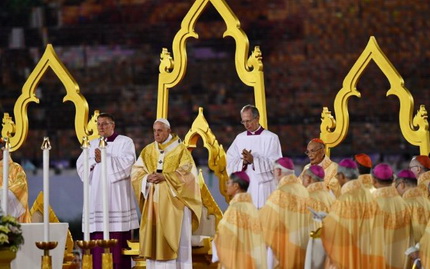 Ceturtdienas, 21. novembra, pēcpusdienā (plkst. 11.30 pēc Romas laika) "Thephasadin" stadionā Svētais tēvs vadīja dievkalpojumu. Bangkokas arhidecēzes ģenerālvikārs Džons Battista Somkiats Trinikorns informēja, ka Euharistijas svinībās piedalījās vairāk nekā 50 tūkstoši ticīgo, tostarp katoļu bēgļi no Vjetnamas. "Kas ir mana māte un kas ir mani brāļi?" Jēzus atbilde ir skaidra: "Kas izpilda mana Tēva gribu, tas ir mans brālis un mana māte". Pāvests skaidroja, ka Evaņģēlijā atrodam daudzus jautājumus, kas liek mums aizdomāties, mudina doties ceļā, meklēt patiesību, atvērt sirdi un atklāt Kristu, kura vēsts vienmēr ir jauna un aktuāla. Klausoties Kunga vārdus un atbildot uz Viņa jautājumiem, misionāri apzinājās, ka viņi pieder lielākai ģimenei nekā tā, kas veidota no radnieciskām, kultūras, reģiona vai piederības kādai konkrētai grupai saitēm. Svētā Gara vadīti, misionāri devās ceļā, lai meklētu savas lielās ģimenes locekļus, kuri vēl nepazina Kristu. Pāvests atgādināja, ka pirms 350 gadiem tika izveidots Siāmas apustuliskais vikariāts. Toreiz misionāri šajā zemē iesēja sēklu, kas izdīga un šodien nes augļus. Sprediķī Francisks skaidroja, ka apustuliskā vikariāta izveidošanas gadadiena nenozīmē atgriezties pie pagātnes notikuma. Tas ir arī aicinājums turpināt iesākto darbu ar tik pat lielu dedzību un paļāvību. Mēs esam mācekļi misionāri, ja pieņemam lēmumu kļūt par Kunga ģimenes locekli un darām to, ko darīja Viņš – sēdēt pie viena galda ar grēciniekiem un sludināt, ka Debesu Tēvs mīl visus cilvēkus. Pāvests atzina, ka viņš īpaši domā par sievietēm un bērniem, kas ierauti prostitūcijas un cilvēktirdzniecības tīklos; par atkarībās nonākušajiem jauniešiem, kuri pārstājuši sapņot; par migrantiem, kuri spiesti atstāt savas mājas un savas ģimenes; par trūkumcietējiem un tiem, kuri dzīvo bez draudzības ar Jēzu, bez spēka, gaismas un mierinājuma, ko tā dod, bez ticības kopienas, kas tos pieņemtu, bez dzīves jēgas un mērķa perspektīvas. Svētais tēvs uzsvēra, ka šie cilvēki ir mūsu brāļi un mūsu mātes. Māceklis misionārs zina, ka evaņģelizēt nozīmē atvērt durvis Dievam un tuvākajam, palīdzēt savam brālim un savai māsai tikties ar žēlsirdīgo Tēvu. Pāvesta Franciska apustuliskās vizītes Taizemē otrajā dienā notika 6,0 magnitūdu zemestrīce, kuras epicentrs atradās 92 km uz ziemeļiem no Muangnanas pilsētas, kas atrodas Laosas pierobežas reģionā, 21. novembrī paziņoja Seismisko pētījumu centrs. Vaticannews.va Foto: Vatican Media |