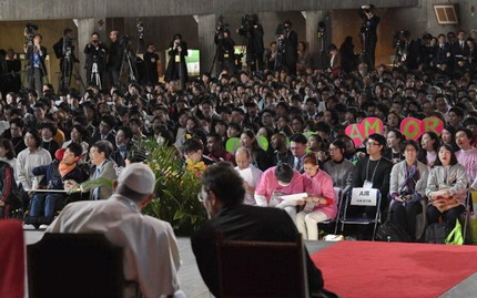 Noklausījies trīs jauniešu liecības, Vatikāna viesis visiem klātesošajiem atgādināja, ka laiks, ko veltām citiem, nekad nav zaudēts laiks. Viņš tos mudināja nebūt "zombijiem", dzīvojot sabiedrībā, kas ir bagāta, bet reizē vientulības verdzene. "Tā nav utopija. Veidot uz brālības kultūras balstītu nākotni ir iespējams," sacīja Francisks. Dažādība ir bagātība. Mums nav jāķeras pie huligānisma jeb otra iebiedēšanas un vardarbības. Mūsu ceļš ir sevis veltīšanas citiem ceļš, jo, lai mēs būtu laimīgi, nevaram "skatīties spogulī". Mums ir vajadzīgs Dievs un citi cilvēki – tā ir misija, ko pāvests sava apustuliskā ceļojuma laikā uzticēja Japānas jauniešiem. Uz tikšanos ar viņu bija ieradušies aptuveni 900 japāņu un citu tautību jaunieši. Katedrālē skanēja dziesmas un valdīja priecīga atmosfēra. Romas bīskaps kārtējo reizi pievērsās brālības un "tikšanās kultūras" nozīmei. Kāds filipīniešu imigrants, iepriekš sniedzot liecību, runāja par huligānismu skolā. Viņš ieceļoja Japānā, būdams vēl pamatskolnieks. Skolā viņam nācās piedzīvot agresiju no citu biedru puses. Jaunietis atzina, ka tai laikā viņā iezagās domas pat par pašnāvību, bet visu pārvarēt palīdzēja kristīgā ticība un Jēzus vārdu klausīšanās. Tā viņu izglāba. Atsaucoties uz Leonardo liecību, pāvests atzīmēja, ka aizvien vairāk ir to jauniešu, kuri uzdrošinās runāt par saviem bērnībā piedzīvotajiem pazemojumiem. Trakākais, ka skolā izciestie pazemojumi ievaino mūsu garu un mūsu pašcieņu – norādīja Francisks. Mūsu pašcieņa tiek ievainota brīdī, kad mums ir visvairāk nepieciešams iekšējais spēks, lai sevi pieņemtu un stātos pretī jauniem dzīves izaicinājumiem. “Paradoksāli, taču visvājākie ir tie, kuri dara pāri, tāpēc ka viņi domā, ka var sevi apliecināt, darot citiem sliktu. Mums visiem ir jāapvienojas un jāstājas pretī šai huligānisma kultūrai, un jāiemācās pateikt: Pietiek!” Katram ir jāuzņemas sava atbildība – gan mācību iestādēm, protams, gan arī pašiem jauniešiem. Lielās reliģijas māca toleranci, harmoniju un žēlsirdību – turpināja pāvests. Tās nemāca bailes, šķelšanās vai konfliktus. Jēzus nemitīgi mudināja savus mācekļus nebaidīties. Kāpēc? Tāpēc ka, ja mēs mīlam Dievu un savus brāļus un māsas, šī mīlestība aizdzen bailes. Daudziem no mums, kā to atgādināja Leonardo, Jēzus dzīves uzlūkošana palīdz rast mierinājumu, jo Jēzus pats zināja, ko nozīmē tikt nievātam un atmestam. Viņš tika pat krustā sists. Viņš zināja arī to, ko nozīmē būt svešiniekam, emigrantam, "citādākam". "Tu esi vajadzīgs Kungam, lai tu varētu iedrošināt daudzus citus, kuri šodien lūdz palīdzīgu roku, lai varētu atkal piecelties", piebilda Francisks. Svētais tēvs aicināja jauniešus izkopt spēju veltīt citiem laiku, ieklausīties, dalīties, izprast. Ja mēs nedodam un uz citu rēķina "ietaupām laiku", tad, īstenībā mēs piedzīvojam tukšumu un paliekam zaudētāji. Pāvests arī atgādināja, ko reiz ir teicis kāds garīgais vadītājs: "Lūgties nozīmē vispirms vienkārši tur būt. Nomierinies, atrodi Dievam laiku, ļauj Viņam sevi uzlūkot un Viņš tevi piepildīs ar savu mieru". Bieži vien konstatējam, ka kāda persona, kopiena vai visa sabiedrība ārēji var būt ļoti attīstīta, bet tās iekšējā dzīve ir trūcīga, dvēsele vāja un dzīves spars apdzisis – turpināja Francisks. Tā vairs nesapņo, nesmejas, nezina, ko nozīmē brīnīties. Tās sirds ir apstājusies, jo tā vairs neprot priecāties ar citiem par dzīvi. Tā ir kļuvusi par "zombiju". Cik daudz pasaulē ir cilvēku, kuri ir materiāli bagāti, bet dzīvo neiedomājamā vientulības verdzībā! Māte Terēze, kura darbojās nabagu vidū, reiz teica: "Visbriesmīgākā nabadzība ir vientulība un sajūta, ka neesi mīlēts". Šajā sakarā pāvests aicināja jauniešus sev pajautāt, kam viņi dzīvo. Runa ir nevis par lietām, bet cilvēkiem, kuru labā dzīvot. Materiālās lietas ir svarīgas, bet bez citiem cilvēkiem nav iespējams iztikt. Lai mēs atklātu savu identitāti, vērtību un iekšējo skaistumu, mēs nedrīkstam "skatīties spogulī". Daudz kas ir izgudrots, bet, paldies Dievam, pagaidām vēl nav "dvēseles selfiju" – sacīja Francisks. Lai mēs būtu laimīgi, mums ir jālūdz citu palīdzība, jālūdz, lai kāds cits nofotografē, jāiziet no sevis un jāiet pretī citiem, īpaši tiem, kuriem visvairāk ir vajadzīga palīdzība. Vaticannews.va Foto: Vatican Media |
