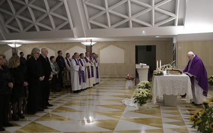 Šai dienai veltītajā Evaņģēlija fragmentā (sal. Mt 21, 23-27) lasām, ka virspriesteri un tautas vecākie uzdod Jēzum izaicinošus jautājumus: "Ar kādām tiesībām Tu to dari? Un kas Tev ir devis šīs tiesības?" Viņi grib Jēzu, tā teikt, "iedzīt stūrī". Pāvests norādīja, ka ticīgais, kurš šādi rīkojas, izaicina Dievu. Tā ir riskanta rīcība. Ja Kungs tā attiektos pret mums, ja Viņš gribētu mūs "iedzīt stūrī", tad mums būtu neredzēt paradīzi. Un bēdas mums, ja Viņš pēc tam "mazgātu rokas". Francisks atgādināja, ka Jēzus mācīja ļaudis, viņus dziedināja, uzmundrināja un darīja brīnumus, tādējādi padarot virspriesterus nervozus. Jēzus ar savu maigumu un nesavtību piesaistīja cilvēkus sev. Turpretī virspriesteriem, kuri rīkojās kā ierēdņi un kurus tauta respektēja, cilvēki tomēr netuvojās, jo tie viņiem neuzticējās. Tāpēc šie virspriesteri grib Jēzu "iedzīt stūrī", uzdodot Viņam provokatīvus jautājumus un tādējādi norādot, ka Viņš neesot nekāds priesteris, ne likuma zinātājs, tāpēc ka Viņš nav studējis viņu augstskolās. Viņš neesot nekas. Jēzus viņiem atbild ar pretjautājumu un tādā veidā "iedzen viņus stūrī". Viņš tiem jautā: "No kurienes bija Jāņa kristība? No Debesīm vai no cilvēkiem?" Virspriesteri "mazgā rokas" un pasaka Jēzum: "Mēs nezinām". Pāvests atzina, ka tāda ir remdeno un liekulīgo kristiešu attieksme. Rokas mazgāja ne tikai Pilāts, bet arī šie mazgā rokas, sakot: "Mēs nezinām." Labāk neiedziļināties citu cilvēku dzīvē, viņu problēmās, labāk necīnīties par labo, necīnīties par to, lai daudzie, kuriem tas ir tik ļoti nepieciešams, tiktu dziedināti. Labāk to nedarīt. Nesmērēsim savas rokas. Jēzus šiem virspriesteriem atbild tādā pašā garā: "Arī es jums neteikšu, ar kādām tiesībām es to daru." Remdenajiem kristiešiem, kuri dzīvo ar šādu attieksmi, trūkst substances. Viņi grib "iedzīt Dievu stūrī": "Vai nu Tu man izdari šo, vai arī es vairs neiešu uz baznīcu". "Un ko atbild Jēzus? 'Ej, ej, dari kā zini!'" – interpretējot Jēzus atbildi, teica pāvests. Remdenie kristieši "mazgā rokas" un tādējādi kļūst par "Pilāta brālības" locekļiem. Daudzi kristieši "mazgā rokas" kultūras, vēstures, mūsdienu cilvēku izaicinājumu priekšā. Tie var būt arī pavisam sīki, ikdienišķi izaicinājumi. Kāds nabags ar izstieptu roku lūdz palīdzību, bet ticīgais atsaka tam sīknaudu, aizbildinoties, ka viņš taču to nodzers. "Bet viņam nav ko ēst!" uzsvēra Francisks, aicinot padomāt, kas gan notiktu, ja Kungs tāpat rīkotos ar mums. Tad mums nebūtu izredžu nokļūt paradīzē. Noslēgumā Svētais tēvs mūs aicināja saskatīt savu smalko liekulību, savu remdenumu un ar visiem spēkiem izvairīties no iepriekš minētās rīcības. Ja mūsos kaut kas tāds ir, tad iznīdēsim to, labosim savu rīcību, lai atvēlētu vietu Kungam, kurš nāk – mudināja pāvests. Vaticannews.va Foto: Vatican Media |