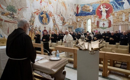 Marija kļuva Dieva Māte šī vārda īstā un pilnīgā nozīmē brīdī, kad "dzemdēja savu pirmdzimto Dēlu" (Lk 2, 7) – norādīja Kantalamessa. Teologs atzina, ka tituls "Dieva Māte" izsaka vienu no kristietības dziļākajiem noslēpumiem un lielākajiem paradoksiem. Runa ir par senāko un svarīgāko dogmu jeb ticības patiesību. Baznīca pasludināja, ka Marija ir Dieva Māte jau 431. gadā, Efezas koncila laikā. Šī patiesība ir ikviena Marijas lieluma pamatā. Ja sākotnēji Marijas mātišķība tika uztverta vairāk tikai fiziskā nozīmē jeb kā fiziskā mātišķība, tad ar laiku Baznīca atklāja daudz dziļāku dievišķo mātišķību, ko, kā norādīja tēvs Kantalamessa, mēs varētu saukt par metafizisko mātišķību. Marijas mātišķība attiecas ne tikai uz Kristus cilvēcisko dabu, bet uz visu par cilvēku tapušā Vārda personu. Un tā kā šajā vienā personā ietilpst divas dabas, tas ir, cilvēciskā un dievišķā daba, tad Marija ir patiešām uzskatāma par "Dieva Māti". Attiecības starp Mariju un Kristu nav vairs tikai fiziskas, bet metafiziskas – turpināja tēvs Kantalamessa. Turklāt, Rietumu Baznīcas teologi, īpaši sv. Augustīns, runā par garīgām attiecībām jeb garīgo mātišķību. Uzrunā sprediķotājs pievērsās arī titula "Dieva Māte" ekumeniskajai dimensijai, norādot, ka šodien tas kalpo kā kopīga atsauce un pamats visiem kristiešiem. Tas ir izejas punkts, lai atkal panāktu vienprātību attiecībā uz Marijas lomu ticībā. Tas ir vienīgais ekumeniskais tituls, jo to atzīst visas Baznīcas – gan luterāņu, gan pareizticīgo Baznīca. Kā mēs varam sekot Marijai savā dzīvē? – jautāja kapucīnu tēvs. Jau pats Jēzus iesāk attiecināt šo "Kristus Mātes" titulu uz Baznīcu, sakot: "Mana māte un mani brāļi ir tie, kuri klausās Dieva vārdu un to izpilda" (Lk 8, 21; Mk 3, 31 un sek.; Mt 12, 49). Pateicoties ticībai, kā to atgādina Baznīcas tēvi, katrs no mums var būt par "Jēzus Māti". Kādā veidā? Kā Jēzus to māca? Šajā sakarā tēvs Kantalamessa norādīja uz diviem jau minētajiem elementiem: klausoties Dieva Vārdu un to izpildot jeb dzīvojot saskaņā ar šo Vārdu. Viņš norādīja arī uz dažām cilvēka īstenotajām "pārtrauktās" vai "dalītās mātišķības" formām. Viena no tām ir aborts, otra – dzemdēšana bez ieņemšanas jeb mākslīgā apaugļošana, piemēram, izmantojot donora olšūnas. Šīs formas parādās arī garīgā plāksnē. Kantalamessa paskaidroja, ka tas, kurš pieņem Dieva Vārdu, bet to nepilda jeb kuram ir ticība, bet nav darbu, ieņem Jēzu, bet nedzemdē Viņu. Turpretī, tas, kurš daudz dara, tai skaitā, labus darbu, bet kuram tie nenāk no sirds, kurš tos neveic ar mīlestību uz Dievu vai kuram nav taisna nodoma, tas dzemdē Kristu, neieņēmis Viņu. Otrajā gadījumā, tātad, runa ir par cilvēkiem, kuriem ir darbi, bet nav ticības. Lai mēs izprastu, kas ir īsta un pilnīga mātišķība, un tādējādi līdzinātos Marijai, tēvs Kantalamessa atgādināja, ko mums māca svētais Asīzes Francisks, un proti: mēs ieņemam Kristu, kad ar visu sirdi un taisnu sirdsapziņu Viņu mīlam, un mēs Viņu dzemdinām, kad veicam labus darbus, tādējādi atklājot Viņu pasaulei. Savukārt, atsaucoties uz svētā Bonaventūras mācību, kapucīnu tēvs norādīja, ka dvēsele ieņem Jēzu, kad, nebūdama apmierināta ar dzīvi, kādu tā dzīvo, un galu galā atraisīdamās no saviem vecajiem ieradumiem un kļūdām, tiek it kā garīgi apaugļota, pateicoties Svētā Gara žēlastībai. Tam nekavējoties ir jāparādās mūsu ārējā rīcībā. Ja lēmums netiek īstenots darbos, tad Jēzus tiek ieņemts, bet netiek dzemdināts. Šādā gadījumā mēs tā arī nekad nepiedzīvosim īstus Jēzus dzimšanas "otros svētkus". Saņemto žēlastību nedrīkst atlikt uz vēlāku laiku, to ir nekavējoties jāīsteno darbos. Noslēgumā tēvs Kantalamessa atgādināja, ka, lai mēs būtu pēc Marijas attēla, tas ir, lai nemeklētu neko citu kā tikai "žēlastību pie Dieva" un necenstos izpatikt cilvēkiem, mums ir jāapbruņojas ar drosmi un jātic Dieva un Viņa Gara spēkam. Gaidot Ziemassvētkus un ejot Marijas skolā, mums atliek tikai pievienoties viņai klusā kontemplācijā un mūsu pestīšanas labā par cilvēku tapušā Dieva pielūgsmē. Vaticannews.va |
