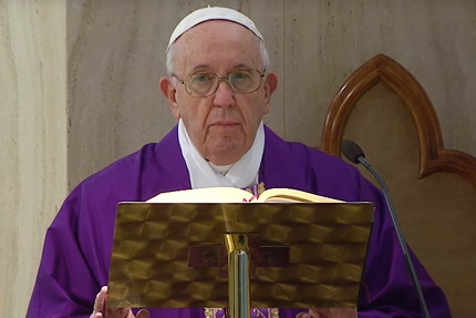 Šorīt Svētā tēva pirmie vārdi attiecās uz paļāvību. Kā ierasts, dievkalpojums notika Vatikāna viesu nama kapelā un tika translēts tiešraidē. Tas iesākās ar šādiem ievaddziesmas vārdiem: “Es paļaujos uz Kungu. Es gavilēšu un priecāšos par Tavu apžēlošanos, jo Tu uzlūkoji manu postu” (Ps 30, 7-8). Pēc tam pāvests aicināja lūgties par tiem, kuri cieš koronavīrusa izraisītās ekonomiskās krīzes dēļ: Šodien lūgsimies par tiem, kuri pandēmijas dēļ sāk izjust ekonomiskās problēmas, jo nevar strādāt, un tas viss atbalsojas uz ģimeni. Lūgsimies par cilvēkiem, kurus skārusi šī problēma. Komentējot Jāņa evaņģēlija fragmentu par ķēniņa ierēdņa dēla izdziedināšanu (sal. Jņ 4, 43-54), homīlijā Francisks aicināja mūs lūgties ar ticību, neatlaidīgi un drosmīgi, jo īpaši šajā laikā. Evaņģēlijā minētais tēvs lūdz veselību savam dēlam. Jēzus vēršas pie visiem, tai skaitā arī pie viņa, ar zināma veida pārmetumu: “Ja jūs neredzēsiet zīmes un brīnumus, jūs neticēsiet”. Ierēdnis, tā vietā, lai apklustu un klusētu, iet tālāk un saka: “Kungs, atnāc, kamēr mans dēls vēl nav nomiris”. Un Jēzus viņam atbild: “Ej! Tavs dēls dzīvo”. Turpinājumā pāvests norādīja, ka īstai lūgšanai ir vajadzīgas trīs lietas. Pirmā lieta ir ticība. Nereti mēs lūdzamies tikai ar vārdiem, mums pietrūkst ticības. Kādam citam Evaņģēlijā minētajam tēvam Jēzus atbild: “Tam, kurš tic, viss ir iespējams”. Un šis tēvs saka: “Es ticu, bet palīdzi manai neticībai” jeb pavairo manu ticību. Tātad, mums ir jālūdzas ar ticību gan dievnamā, gan ārpus tā. Vai es lūdzos ar ticību, vai tikai ieraduma pēc? Vai apzinos Kunga klātbūtni? Vai apzinos, ka sarunājos ar Kungu un ka viņš spēj atrisināt problēmu? Francisks brīdināja, lai mēs neiekristu ieradumā. Lai lūgšana būtu īsta lūgšana, pirmais nosacījums ir ticība – viņš uzsvēra. Otrais nosacījums, ko māca pats Jēzus, ir neatlaidība. Daži lūdzas, bet žēlastība kā nenāk tā nenāk. Viņiem trūkst neatlaidības tāpēc, ka tas, ko lūdz, patiesībā, viņiem nemaz nav vajadzīgs, vai arī viņiem nav ticības – skaidroja pāvests. Jēzus stāsta mums līdzību par kaimiņu, kurš pusnaktī atnāk pie sava kaimiņa, lai lūgtu maizi, un neatlaidīgi klauvē pie viņa durvīm. Kungs stāsta arī par atraitni, kura ar savu neatlaidību jeb pat “uzbāzību” panāca no nelietīgā tiesneša lietas atrisinājumu sev par labu. Francisks uzsvēra: “Ticība un neatlaidība ir nešķiramas, jo, ja tev būs ticība, tu būsi drošs, ka Kungs izpildīs tavu lūgumu. Bet ja Kungs liks tev pagaidīt, tu klauvēsi, klauvēsi un klauvēsi, līdz beidzot saņemsi no Viņa žēlastību.” Ja Kungs mums neatbild un liek gaidīt, tad tas nenotiek tāpat vien. Viņš šādi rīkojas mūsu labā. Viņš grib, lai mēs pieietu tam nopietni – lai mēs lūgšanu uztvertu nopietni, lai nelūgtos kā papagaiļi… Svarīgi ir ne jau daudzie vārdi, bet ticība un neatlaidība.