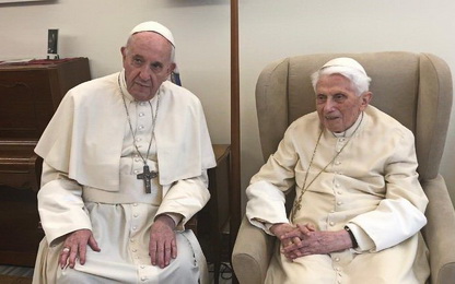 “Jūs bijāt tik laipns un pirmais mani informējāt par sava mīļotā brāļa, mons. Georga aiziešanu mūžībā,” raksta Francisks. “Vēlos jums vēlreiz izteikt visdziļāko līdzjūtību un šajā sāpīgajā brīdī apliecināt savu garīgo tuvību.” Turpinājumā Francisks apliecina, ka lūdzas par Benedikta XVI mirušo brāli, lai dzīvības Kungs savā žēlsirdīgajā labestībā uzņem viņu debesu tēvijā un piešķir viņam godības kroni, kas sagatavots uzticīgajiem Evaņģēlija kalpiem. “Un es lūdzos arī par Jums, Svētība, caur Vissvētākās Jaunavas Marijas aizbildniecību izlūdzot no Tēva atbalstu, ko sniedz kristīgā cerība un maigais dievišķais mierinājums,” raksta Francisks. Vaticannews.va Foto: Francisks apmeklē Benediktu XVI 2019. gadā (Vatican Media) |