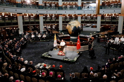 Savā uzrunā pāvests vairākkārt izmantoja tilta simbolu. Tilts pār Dardaneļu jūras šaurumu vieno Āziju un Eiropu, Austrumus un Rietumus. Taču, kā atzīmēja viesis, vispirms jau tas vieno pašu Turciju, tās daļas un tādējādi “no iekšienes kalpo par jūtīguma krustcelēm”. Ja tās tiktu padarītas vienveidīgas, daudz kas būtu zaudēts. “Sabiedrība ir dzīva, ja tā ir daudzveidīga,” uzsvēra Leons XIV. Viņš apliecināja, ka Turcijas vienotībā pozitīvu ieguldījumu vēlas dot arī kristieši. Viņi ir un jūtas daļa no turku identitātes, kuru tik atzinīgi ir novērtējis svētais Jānis XXIII. Kalpojot par Stambulas latīņu rita vikariāta administratoru, kā arī par Turcijas un Grieķijas apustulisko delegātu no 1935. līdz 1945. gadam, viņš dedzīgi rūpējās, lai katoļi, tajā skaitā latīņu un Austrumu ritiem piederīgie, neizslēgtu sevi no jaunās Republikas veidošanas. “Atklājoties, Dievs nodibināja tiltu starp debesīm un zemi. Viņš to darīja, lai izmainītos mūsu sirds, kļūstot līdzīga Viņa sirdij,” teica pāvests. “Tas ir grandiozs tilts, kas gandrīz vai izaicina fizikas likumus. Tāda ir mīlestība, kurai, līdzās intīmajai un privātjai dimensijai, piemīt arī redzamā un publiskā dimensija,” sacīja Svētais tēvs. Uzrunājot Turcijas valsts amatpersonas, pilsoniskās sabiedrības pārstāvjus un diplomātus, Leons XIV uzsvēra: “Taisnība un mīlestība met izaicinājumu spēka likumam un uzdrošinās prasīt, lai iejūtība un solidaritāte tiktu uzskatīti par attīstības kritērijiem. Tādēļ, sabiedrībā, kāda ir turku sabiedrība, kur reliģijai piemīt redzama loma, ir būtiski godāt visu Dieva bērnu cieņu un brīvību – vīriešu un sieviešu, savu tautiešu un ārzemnieku, nabadzīgo un bagāto. Mēs visi esam Dieva bērni un tam ir personīgas, sociālas un politiskas sekas. Tas, kuram ir Dieva gribai paklausīga sirds, vienmēr veicinās kopējo labumu un visu cilvēku respektu. Šodien tas ir liels izaicinājums, kuram ir jāpārveido vietējā politika un starptautiskās attiecības, jo īpaši tehnoloģiskās evolūcijas priekšā, kas, pretējā gadījumā, varētu pastiprināt netaisnības tā vietā, lai tās novērstu.” Svarīgu vietu pāvests savā uzrunā ierādīja ģimenei. Viņš atgādināja, ka ģimene ir pirmā sabiedriskās dzīves šūniņa, kurā iemācīties, ka bez otra nav “es”. Vēl vairāk, nekā citās zemēs, turku kultūrā ģimene saglabā lielu nozīmi un netrūkst iniciatīvu, kas atbalsta tās centrālo lomu. Tās iekšienē nobriest būtiska attieksme pret pilsonisko sadzīvi un kopējā labuma izjūta. “Protams,” atzīmēja Leons XIV, “katra ģimene var aizvērties arī sevī, kultivēt ienaidu, vai neļaut kādam no saviem locekļiem izpausties, līdz pat viņa talantu ierobežošanai. Tomēr, ne jau individuālistiska kultūra, ne jau laulības un auglības panicināšana, ir tās, no kurām cilvēki var smelties lielākas dzīves un laimes iespējas.” Šim “patēriņa ekonomikas apmānam, kurā vientulība kļūst par biznesu”, pāvests aicināja atbildēt ar kultūru, kas prot novērtēt tuvākmīlestību un saiknes. Liela uzmanība Svētā tēva uzrunā bija arī sievietei un tās lomai, sieviešu aktīvai dalībai profesionālajā, kultūras un politiskajā dzīvē, viņu ieguldījumam sabiedriskās dzīves uzplaukumā. Vēl viens nozīmīgs aspekts, ko izskatīja Leons XIV, ir dialogs. Viņš teica, ka šodien vairāk nekā jebkad agrāk, ir nepieciešami dialoga veicinātāji. “Piedzīvojam spēcīgas konfliktualitātes posmu globalā līmenī, kurā pārsvaru gūst ekonomiskās un militārās varas stratēģijas, vairojot to, ko pāvests Francisks sauca par “fragmentāro trešo pasaules karu”. Nekādā gadījumā nedrīkst padoties šādai novirzei,” sauca Leons XIV. Viņš apliecināja, ka Svētais Krēsls, izmantojot savu vienīgo spēku, proti, garīgo un morālo spēku, vēlas sadarboties ar visām nācijām, kuru sirdij ir tuva katra cilvēka integrāla attīstība. Vaticannews.va Foto: Vatican Media |