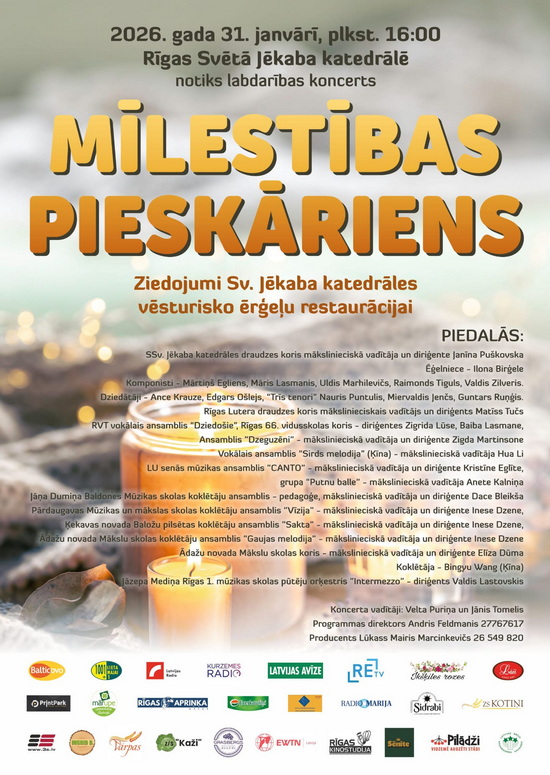 Rīgas Sv. Jēkaba katedrālē labdarības koncerts "Mīlestības pieskāriens"